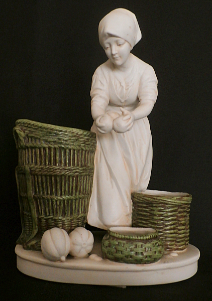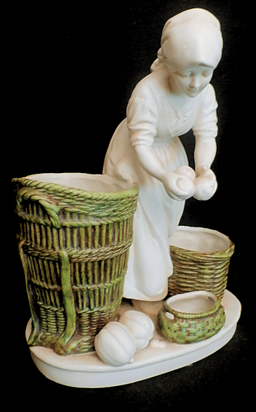 A bisque porcelain group, gardener with baskets, Stamped with the Katzhütte manufactory, under Hertwig & Co., Thuringia.