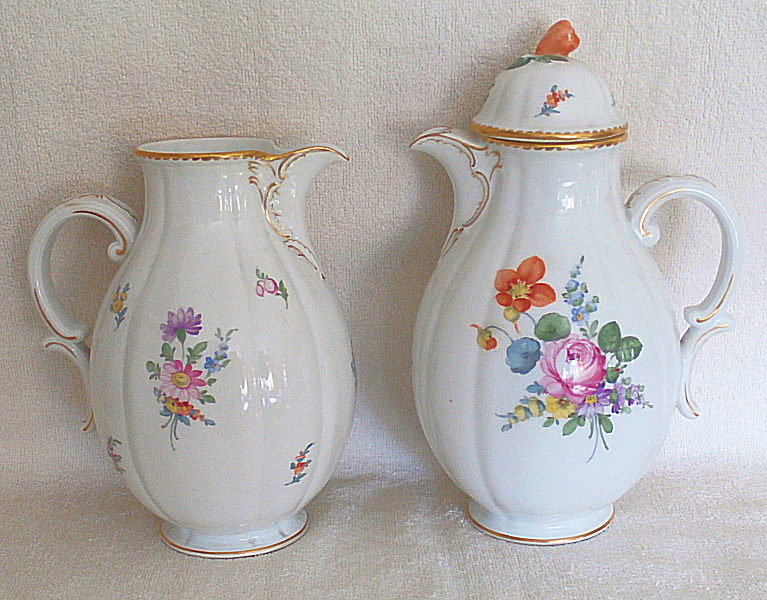 A coffee pot and a milk jug, in perfect condition with no signs of age. Nymphenburg, second half of the 19th century.