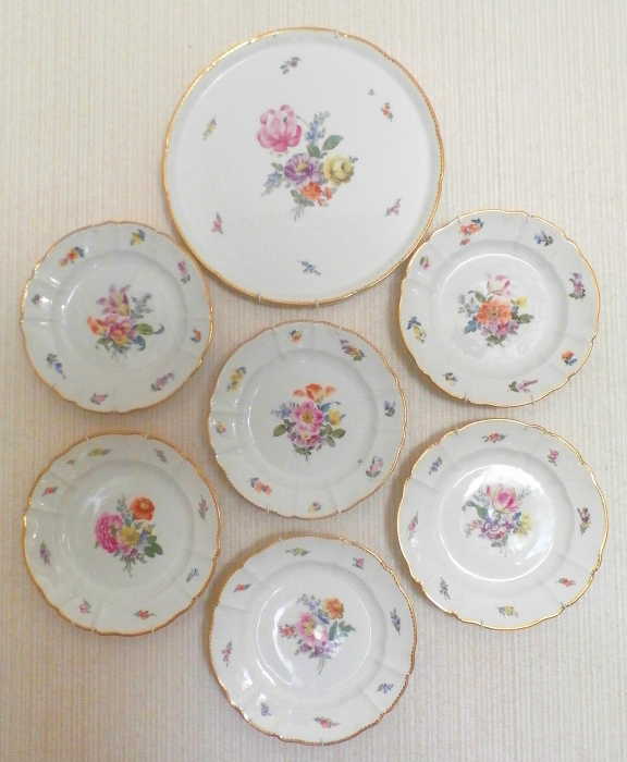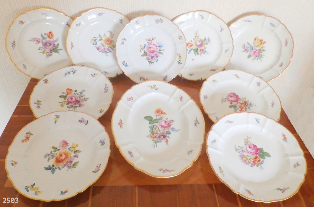 Nymphenburg, from the second half of the 19th century. 20 dinner- and 12 soup plates, diameters 25 and 24 cm. 6 pieces each, CHF 1500.-- 10 dessert plates (20cm diameter) + 12 plates (16cm diameter). per plate CHF 150 .-- And 8 dessert plates with a diameter of 14 cm. per plate SFR 150.--