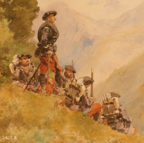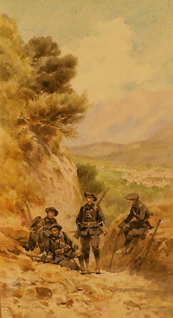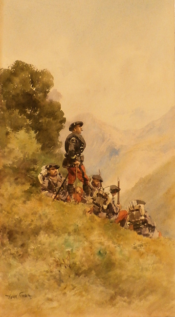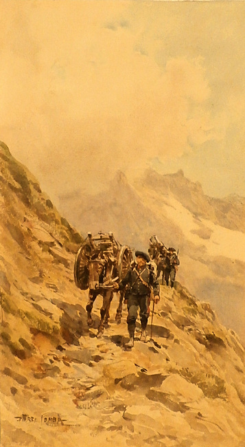 PIERRE PAUL COMBA the Younger.3 watercolor paintings from his time as a military painter of the Alpine Hunter units, from approximately 1888 to 1916.